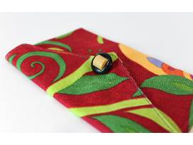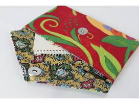 Wallet is fully lined and has interfacing to provide durability. Vintage button over magnetic snap. Made with durable upholstery fabric.