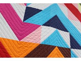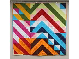 Channel quilting unifies the design of this ultra-modern quilt that proves that solid fabrics can be just as exciting as exotic prints. Hand-labeled by the maker.