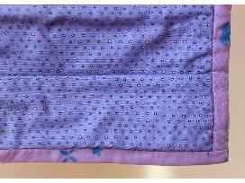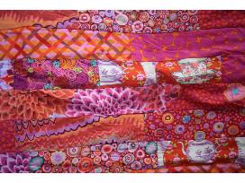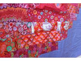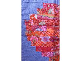 Brilliant red fabrics form the heart on a gentle lavender background. Lap quilt or wall hanging with hidden dowel sleeves on back.