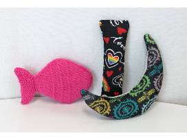Cat toys filled with a potent blend of catnip and silver vine. Toys are sewn and knitted.