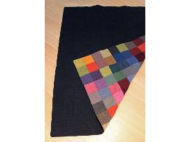 Warm for the winter! This throw is made from wool-blend upholstery samples to keep you toasty and your winter bright. It is super warm and big enough to wrap yourself up in. Fabric from Joani. Made by Aiden.