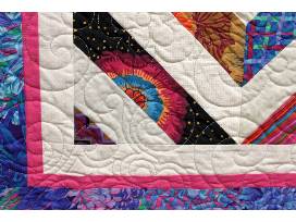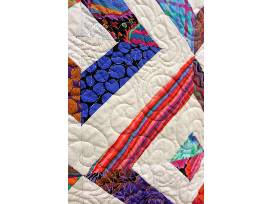 The quilt pattern is by Missouri Star Quilt Co. - Summer in the Park. Bright and fun Kaffe Fasset fabrics add to the summer feel of this quilt. Quilted by Swan River Quilting, Swanville, MN