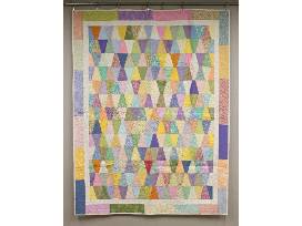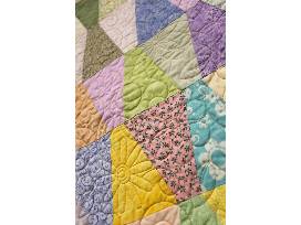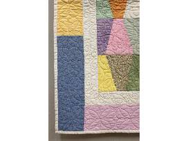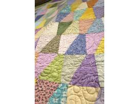 Patchwork tumbler pattern quilt made with pretty pastel fabrics.