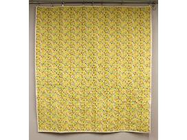 Fabric for this quilt has designs of sewing materials: scissors, thread, thimbles, buttons, and stitching.