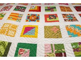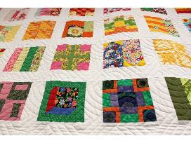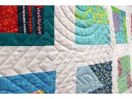 This is a colorful scrappy version of Tula Pink's "100 Modern Quilt" pattern. I had fun combining fabrics and including some fussy cut pieces.