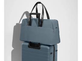 Want to make packing a breeze? Go for this Weekender Bag by Away! This bag easily fits your belongings for a short trip, complete with a laptop sleeve. The cherry on top? The trolley sleeve slips down over the handle of your suitcase, making the walk to the car or airport a breeze! It also includes a detachable padded shoulder strap. This bag comes in Coast Blue, perfect for men or women to enjoy.