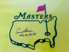 Masters Flag signed by Arnold Palmer. 58', 60', 62', and 64'