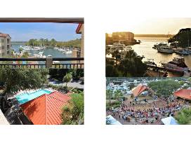 Walk to seven restaurants and use of the Disney Beach short drive across the street at Palmetto Dunes (our sister property). Best view of the Marina and intercoastal waterway! 1300SF.