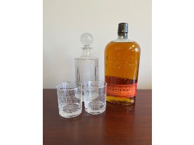 - Whiskey Package: 1.75L Bottle of Bulleit Bourbon, Decanter, and 2 etched Chicago tumblers