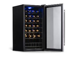 The Newair Freestanding 27 Bottle Compressor Wine Fridge is the best value for the money when it comes to keeping wine chilled. The quiet, powerful compressor keeps wine at the perfect temperature between 39 and 64 degrees, while the double-paned glass and exterior thermostat controls help keep in the cold for efficient operation. This fridge is equipped with removable racks that help to provide customized storage for up to 27 standard bottles. The sleek stainless-steel design looks great in any room of the house.
