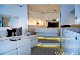 Spend the day exploring the Orange County coastline with your very own captain on a VanDutch 55! Fuel and cleaning included. The luxurious VanDutch 55 is a landmark model in the company's legacy. Its distinctive profile is reminiscent of the original VanDutch 40, including the unmistakable vertical bow and minimalistic deck lines, but with enhanced volume and interior capacity from its 16.48-metre (55-feet) length. Naval architecture from Frank Mulder ensures the VanDutch 55 stakes its claim as one of the best performing, most cutting-edge motor boats in its size range. On the foredeck, vast sunbathing and lounging areas are available, while the cockpit enjoys expanded dining spaces and an electric Bimini. The trip starts & ends in Orange County.