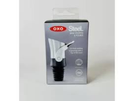 OXO SteeL Wine Stopper and Pourer. Pour and store with ease with this two-in-one tool from OXO. The Wine Stopper & Pourer reduces spills and gives a consistent pour flow. When you're ready to close the bottle for the night, press the soft, comfortable lever down, and the bottle will be sealed for short-term storage. Pour some more by lifting the lever up.