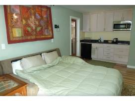 The cottage is a completely self-contained unit detached from the host's main house and nestled into their fruitful garden. Enjoy your own private patio, walk to numerous restaurant options, or cook in the kitchenette. The bed is a queen-size top-of-the-line convertible couch. The light-filled 325sqft unit also includes an indoor dining or desk area and bright and clean bathroom with shower stall.