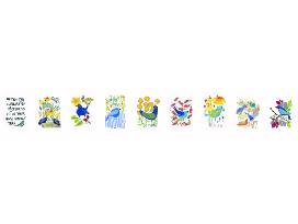 2 sets of Messengers of Joy & Goodwill prayer flags - Each flag is approximately 4.25 inches X 6 inches. They are made of a linen cotton blend sewn with cotton tape across the top. The full length of the 9 flags is 65 inches, including the extra tape to string them up in the spirit of Tibetan Prayer Flags, These 'Birds' will fade and fray. When flying, coupled with the energy of the wind, the will carry messages of hope, joy, peace and connection into the world .