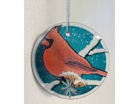 - 3in round, Cardinal in the Snow Glass Ornament by Art For The Young @ Heart
