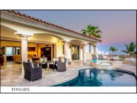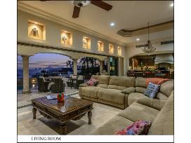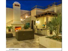A large 3-bedroom, 3 1/2 baths home has a center courtyard with gas fireplace and an amazing roof deck with a stunning view. The outstanding Cabo property was built in 2013 and enjoys 5,000 square feet of beautifully appointed living space, complete with upscale furnishings.
