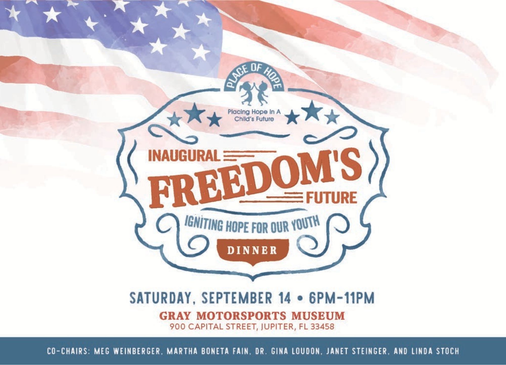 There is no better place to host such an exceptional affair than the prestigious Gray Motorsports Museum surrounded by the best collection of the finest cars, thanks to our good friends Terry and Johnny Gray. Dust off your finest boots, adorn yourself with your best jeans and jewels, and prepare to make a difference! Join us for an evening that celebrates both freedom and the promise of a better future. Freedom's Future Dinner awaits you!