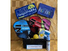 This fun basket has everything you need to hit the court! Pickleball games are great fun and healthy when spending time with friends and family. This basket contains: