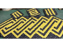This basket is filled with lots of goodies to get your party started. The blue beverage tub is lined with blue & gold pot holders and a matching table runner hand crafted by Josh Gillard's grandma, Suzette. The table runner is lined with special insulation that reflects the heat or cold back up to any dishes or pans you set on it, while protecting your table.