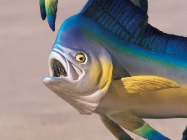 Wyland's bronze sculptures are considered to be among the finest depictions of marine life art. In Dolphin Fish, Wyland shares his fascination with a pair of brightly glimmering dorado or dolphin fish as they explores their underwater world. "Bronze sculpture is one of the most effective mediums for capturing the spirit and grace of marine mammals," Wyland says. "The patina in this sculpture helps make these dolphin fish strikingly lifelike."