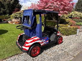 This completely redone red, white and blue 2019 Ezgo RXV Elite cart pays tribute to our veterans.
