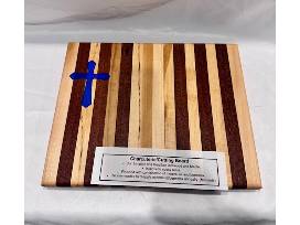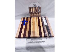 This beautifully constructed board is made from a combination of Brazilian Lacewood and Maple. It is inlaid with an epoxy resin cross & finished with a combination of mineral oil and beeswax.