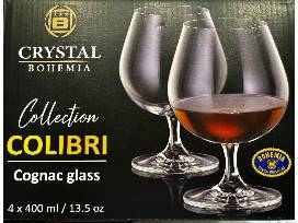 Four Crystal Bohemia Colibri Collection Cognac Glasses (13.5 oz)