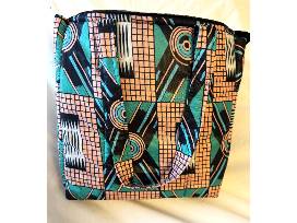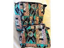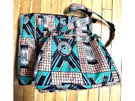 These matching multi-purpose hand bags were handcrafted by Ester at Light of Hope, who serves as both Matron over the girls, as well as a skilled seamstress, making the girl's uniforms. This one of a kind purchase is made from best quality kitenge and khanga fabric in a modern pattern of turquoise green, black and peach tones. The larger bag can be used as a purse, small beach bag or travel bag. It also has an inner pocket (size 5 x 8 inches). The smaller one would be perfect for carrying a bible or travel cosmetics. Larger Bag Dimensions: 14 X 12 inches;