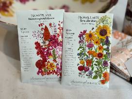 Flower seed packets "Hummingbird Haven" and "Save the Bees"