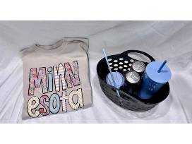 Show off your pride in Minnesota while wearing this cozy sweatshirt (size Large) while sipping on your favorite drink in the floral tumbler. You'll be comfortable and fashionable wherever you choose to go!