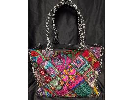 Each bold colored, one of a kind bag, is embellished with patches of embroidery and mirrors. Other features include full lining, flat stand up base, 2 comfortable shoulder straps, and the security of a full zip top. Approx.. 15.5L X 5.5D X 12H.