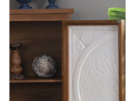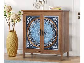 This carved accent cabinet is a stunning blend of vintage charm and modern functionality. With it's eye catching blue and white carved design, this piece complements shabby chic or vintage decor in any room. Crafted with meticulous attention to detail, this handmade decorative accent cabinet features durable pine wood frame and legs.