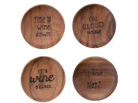 Elevate your appetizer presentation with these 5" Round Acacia Wood Tapas Plates, adorned with a charming burned wine saying and an Abaca tie. This set of four natural plates is perfect for serving snacks, salads, small portions of fruit, or desserts. Crafted from beautiful acacia wood, these plates add a touch of rustic elegance to any family gathering or social event, making them a delightful addition to your entertaining essentials.
