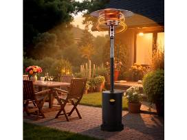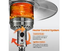 Heavy-duty patio propane heater provides a powerful heat output of 48,000 BTUs, creating a warm environment in just one minute. Two smooth wheels make it easy to move around with just a slight tilt, making it very convenient, and it is also equipped with a flame-out protection system that automatically closes the valve when the heater is tilted, making it very safe. Its exterior is made of high-quality stainless steel for durability, so you don't have to worry about corrosion from rain. It has a temperature adjustment knob that allows you to adjust the temperature of the heater as needed to provide varying degrees of warmth, making it suitable for backyards, gardens, patios, parties, and more.