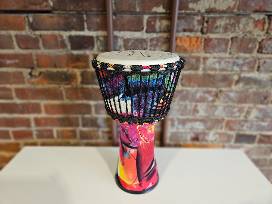 Bring rumba and flamenca to your home with a Gipsy Kings autographed 8.5inch Djembe West African style drum with oil painting base. Signed at their performance at Goodyear Theatre October 1st, 2023.