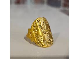 Art Nouveau Eye on the Sparrow Ring. This phase originate in the image of God's watchful eye upon the sparrow, with reference to the gospel of Matthew, 10:29-32 size 5
