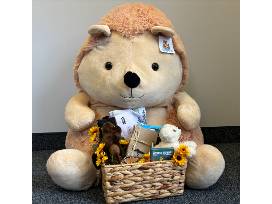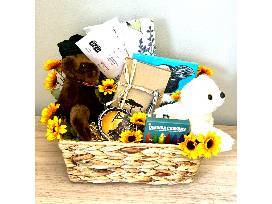 This delightful basket is brimming with zoo-themed treasures, including an Ohio wildflowers tea towel, charming silver giraffe salt and pepper shakers, and two cuddly stuffed animals to bring home. Unleash your imagination with a bag of African animal toys, and take home a stunning painting of one of the zoo's playful penguins. You'll also find giraffe notecards and beeswax crayons for creative moments, along with a small lion bowl to keep your treasures safe. Embark on a wild adventure today!