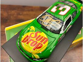 A NASCAR fan's must-have, get your hands on these two authentic Dale Earnhardt Jr. autographed metal Sundrop Signs and an authentic autographed model diecast Sundrop car! NASCAR Hall of Famer Dale Earnhardt Jr., ran the number 3 Sun Drop car at North Wilkesboro, in 1993. He has 26 career wins and he is a two-time Daytona 500 winner, one of 11 drivers to win the race multiple times.With this package, you will receive a free Valvoline oil change and a car cleaning kit which includes cleaning wipes, protectant wipes, beeswax leather care spray, and 12 microfiber cloths to keep your ride in peak performance mode!