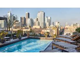 With city lights and vintage brick as a backdrop, Proper Hotel re-imagines and updates an historic Broadway Corridor landmark into a 147-room destination hotel, along with an intimate library-lounge, city-view rooftop pool and lounge-bar-restaurant.