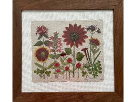 Beautiful handmade papers with embedded plants in handcrafted antique solid cherry frame. (16 1/2" X 15") Made by Thomas Siciliano, Papermaker, Eden Prairie, MN.