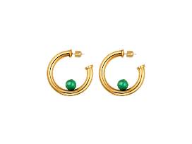 14k Gold Plated Medium Hoop with Malachite Stone by Christina Caruso