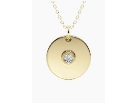 From the Defining Collection. Crafted of 14K yellow gold, this naas necklace features a polished medallion pendant bezel-set with a glittering round diamond.