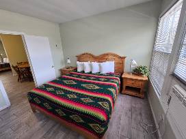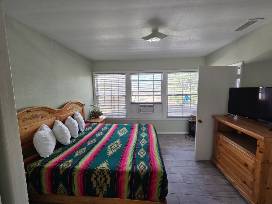 Experience the down to earth charm of Texas Hill Country at the Sunset Inn & Suites in Fredericksburg, where the recently updated "Texan Apartment", which sleeps 5, offers the perfect blend of comfort and local character. Your two-night stay features a bright, spacious room with handcrafted pine furniture, a vibrant Southwestern dÃÆ'Æ'Ã'Ã'©cor, full kitchen, and modern bathroom - all within walking distance to Fredericksburg's famous Main Street shopping, wineries, and the highly-rated on-site Sunset Grill restaurant.