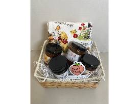 - Fischer & Wieser (peach preserves, peach honey, roasted raspeberry chipotle sauce, smokey mountain whiskey glaze) Playful Pups tea towel and Fredericksburg magnet
