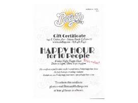 - Gift Certificate for admission for 10 guests to the BellyUp's Friday Happy Hour Show