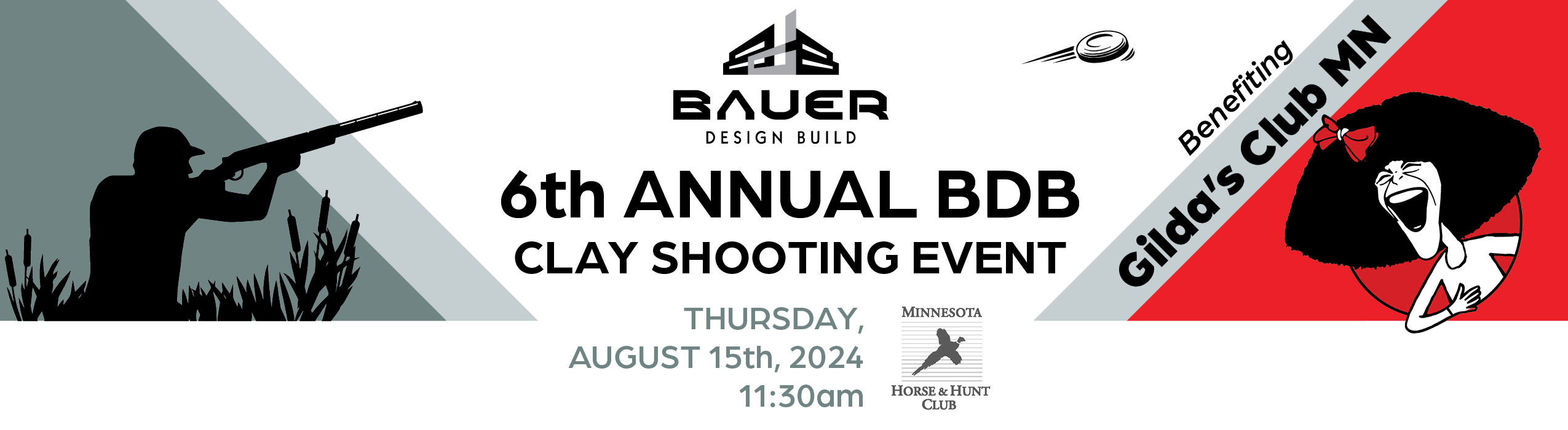 Bauer Design Build and our event sponsors invite you to the 6th Annual Sporting Clay Fundraiser Event benefiting Gilda's Club MN. Enjoy an afternoon of sport clay shooting, a delicious pig roast, silent auction, and an opportunity to bring home a new shotgun!