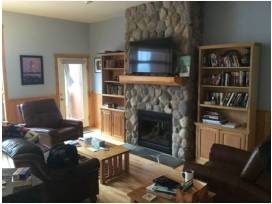 The lower level of the unit has a bedroom overlooking the lake with a queen bed. The lower level is a walk out with small patio outside to view the lake. There is a living room area in the lower level with a gas fireplace and a couch. There is also a brand-new pull-out couch - that converts to a queen bed. There is also a full bathroom and shower on the lower level. WIFI TV downstairs in living room.