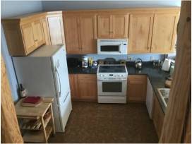 The townhome is fully furnished with an attached one car garage. Upon entry on the main level, you will find a laundry room with washer and dryer. Entering the hallway area, there is a den/office to left and a full bathroom (with shower) to the right. Entering the kitchen, there is a granite countertop with bar seating. Full fridge, microwave and stove are within the kitchen. Fully equipped kitchen with spices, gourmet cookware, knives, and coffee maker.