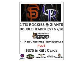 -Two Giants tickets for July 27th and 28th, SF Section Lower Balcony 103, Row 16, Seats 16 and 17 ($480 value)