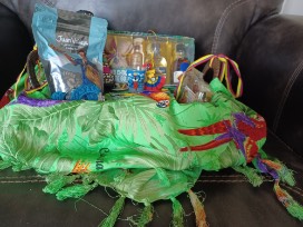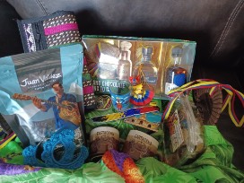 A rum tasting with chocolates and travel size rum (2) and 1 aguardiente. Colombia magnet and colombian scarf.